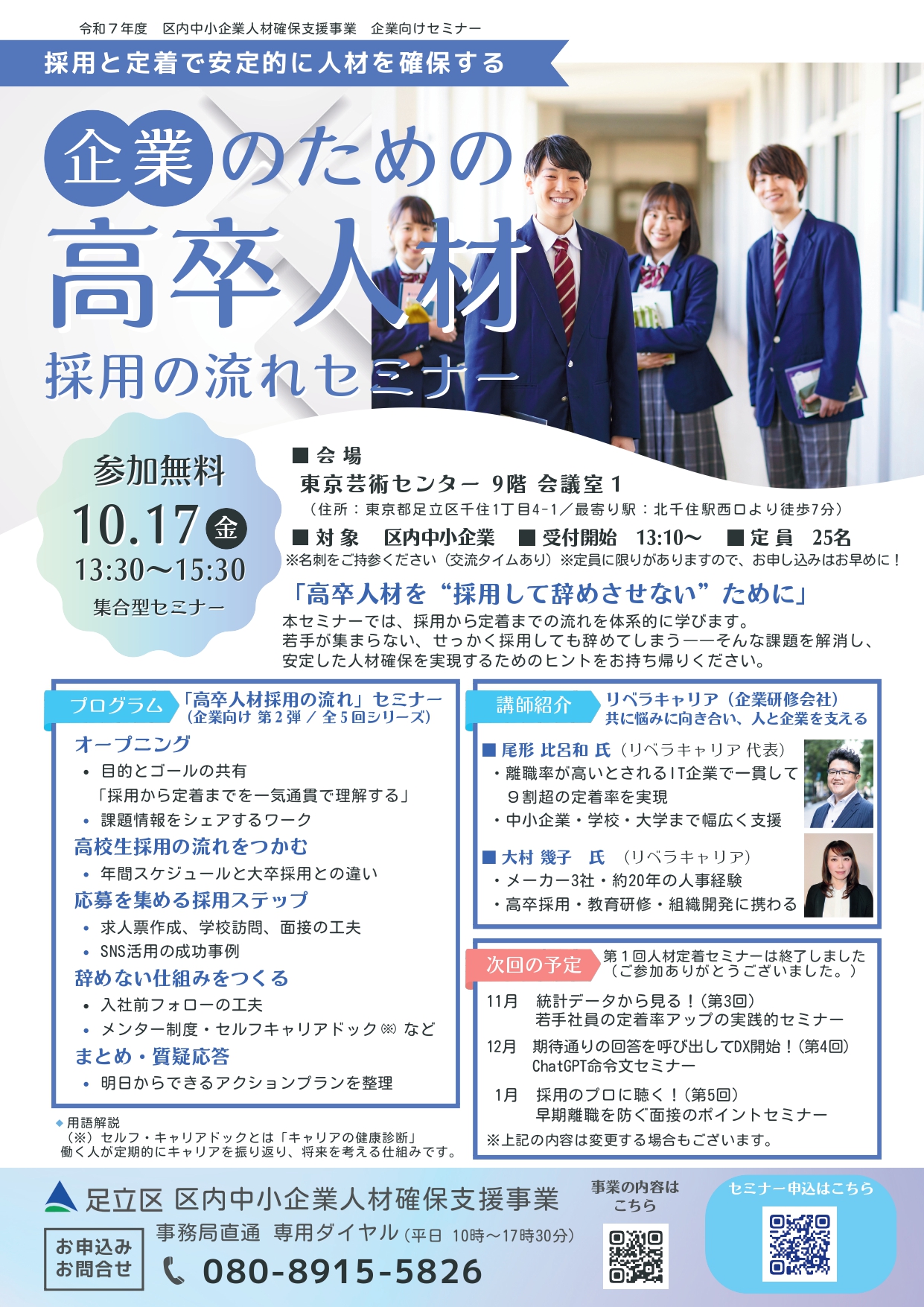 10月17日(金) 企業のための高卒人材採用の流れセミナー開催のお知らせ